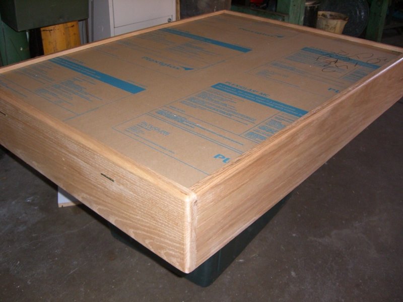 Dan has a big woodworking shop at his house. Through a job association, he was able to aquire oak from a hard wood supplier at the wholesale cost of $25. This would be used for the cabinet. They needed to find transparent material for the front of the exhibit. Safety glass was too heavy and expensive. Plexiglas was readily available in 1/8th" thickness, but was not sturdy enough for use in the exhibit.