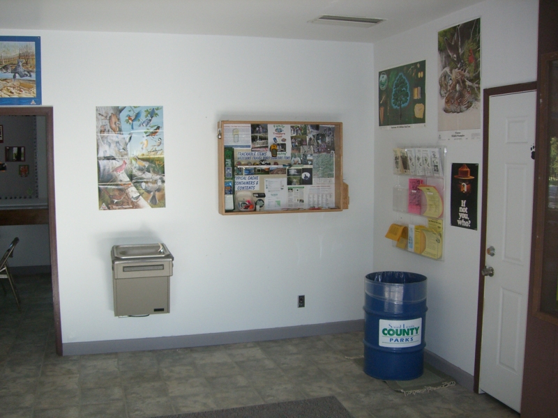 Rich was able to recruit fellow geocacher Dan Baldenweck (geocaching name: Didg Guy) to assist in the project. They set their sites on a section of blank wall in the learning center between to the water fountain and the park brochures.